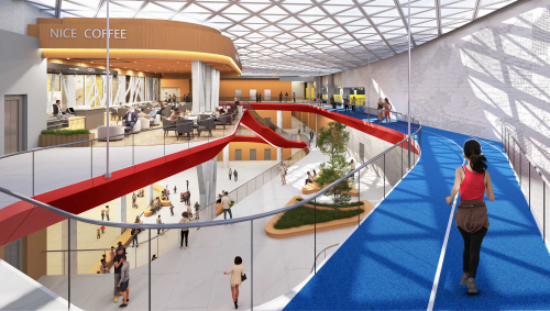????室內(nèi)設(shè)計(jì)方面,方案將開放性、生態(tài)性與文化融合為主導(dǎo)理念,設(shè)置集約化運(yùn)動(dòng)場(chǎng)、串聯(lián)型休閑跑道與有活力的商業(yè)空間,意在將體育中心打造成全民共享的城市活力空間。交通組織明確高效,地上與地下共設(shè)近600個(gè)機(jī)動(dòng)車停車位,充分滿足日常需求。